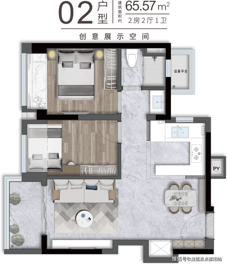 :65㎡左右户型,低门槛适配单身精英、二人世界、三口之家;