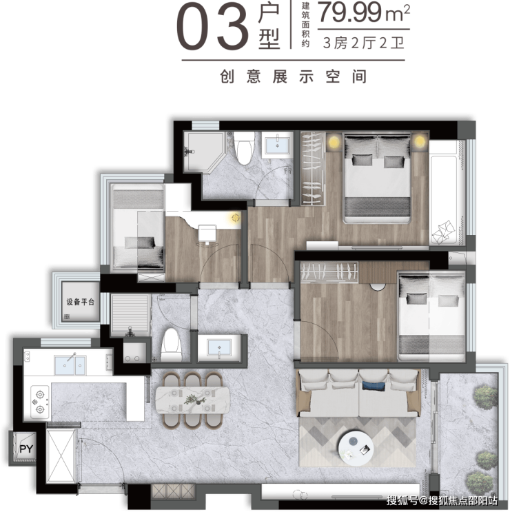:81㎡左右户型,奢阔空间,满足成长型家庭需求,高使用率 + 智能精装,颜值与实用兼备