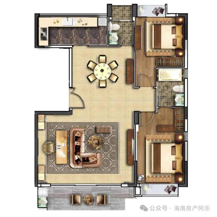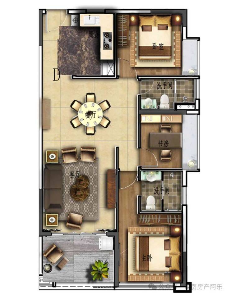 楼王产品:约130-138㎡ 4房2厅2卫(纯板楼/南北通透/两梯两户/温泉入户)