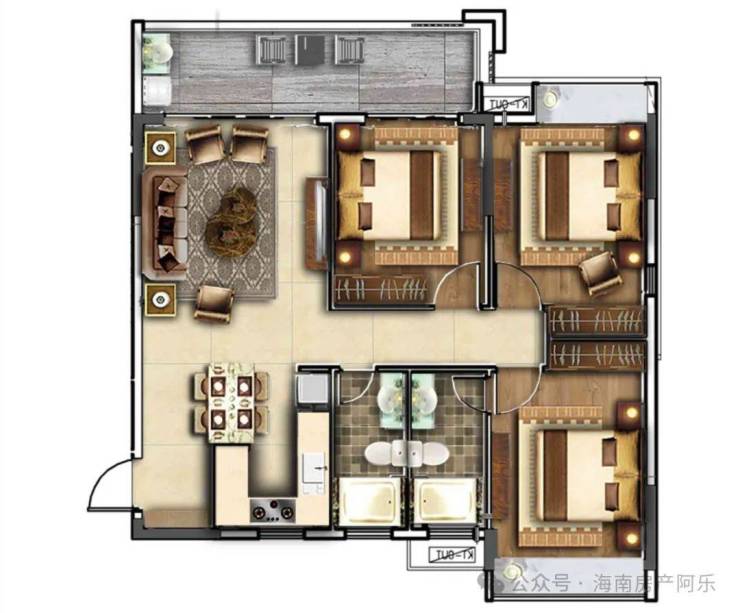 建筑面积约:130-138㎡ 三房两厅二卫(小四房)
