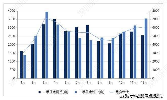 深圳二手房挂牌量也在6万套徘徊,但二手房成交量在去年四季度也往上走,连续两个月突破3000套。