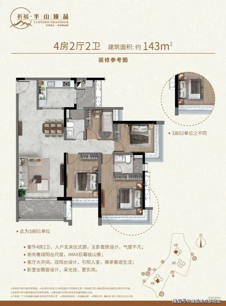 祈福半山臻品(臻品阁)户型设计匠心独运,两梯四户,高舒适梯户比,南北对流,通透舒适,采光通风皆佳,户户都能看到不同角度的山景。
