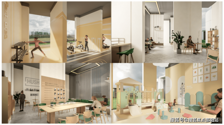 为了满足不同年龄段业主的需求,美盛在不同楼栋的架空层打造不同的主题空间,例如面向孩子的儿童天地,4点半课堂,还有面向青年的健身、老年娱乐和休闲会客场所。
