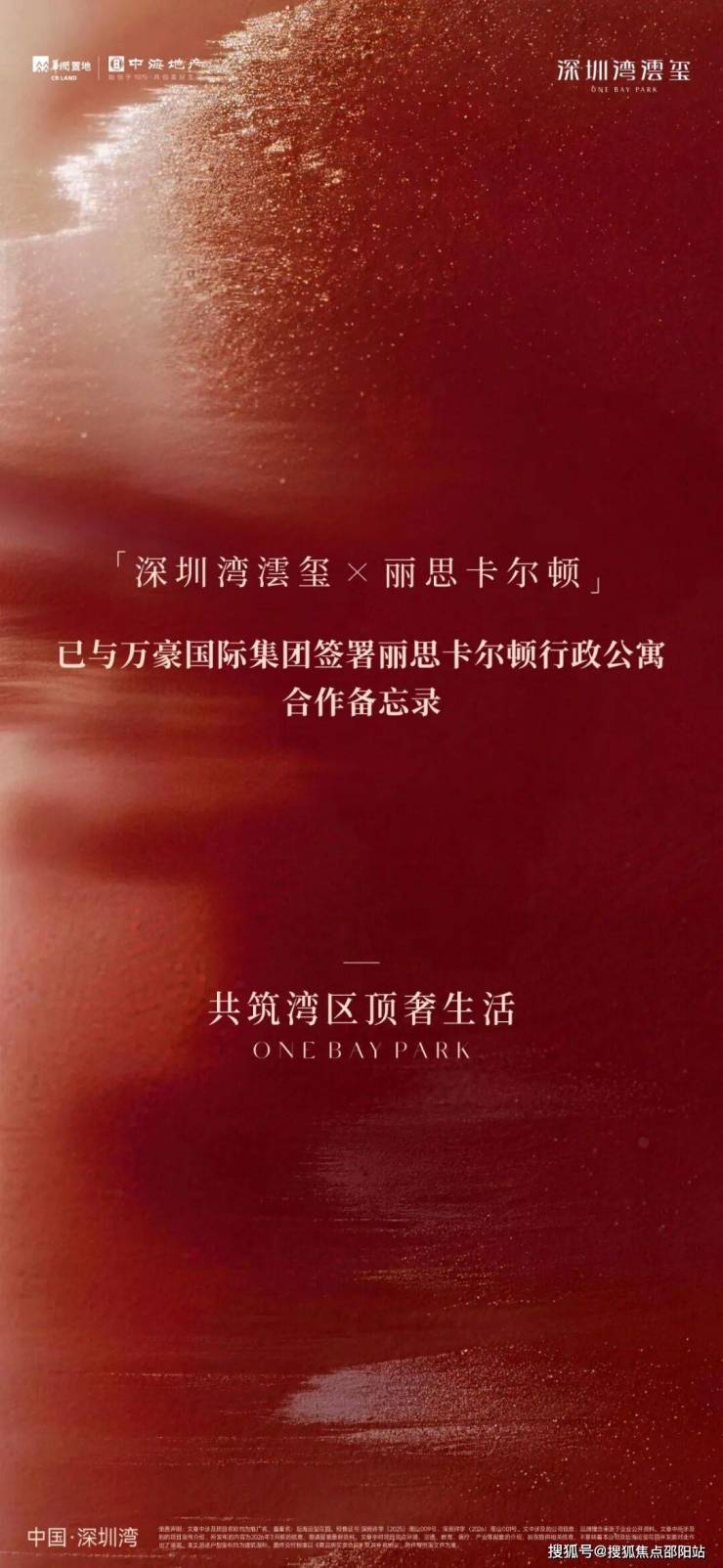 深圳湾澐玺已与万豪国际集团签署丽思卡尔顿行政公寓合作备忘录。