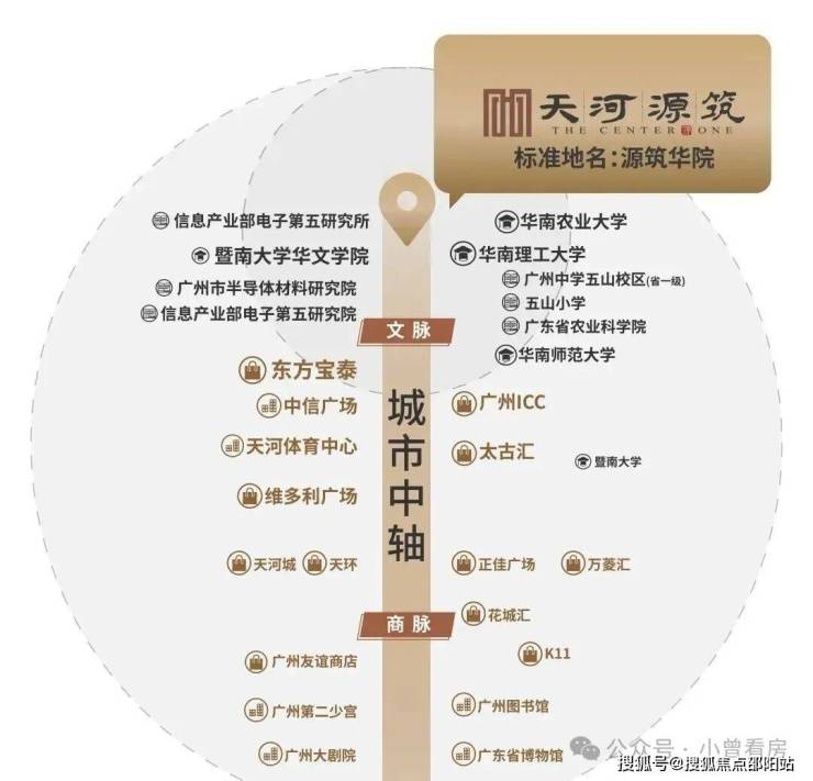 2004年的地,那时候这块地的主人,是汉国恒生房地产公司,然后2017年,阳光城和当代置业入局,后来2021下半年,房企暴雷,几经波折,直到2023年,易主给了世纪金源才得以面世。2023年之前,它的名字还是阳光城·当代檀悦。2023年,它的名字已然是世纪金源·天河源筑。广州发展分三脉:官脉-越秀老中轴,商脉-天河新中轴,文脉-天河五山