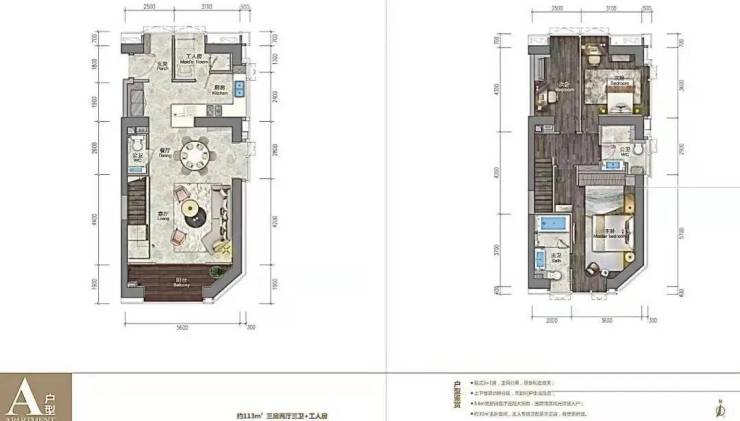 113㎡复式三房两厅三卫+工人房
