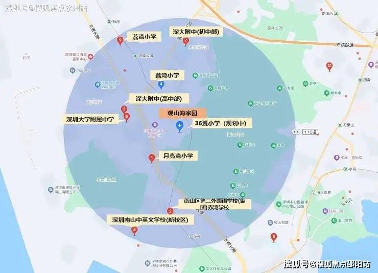 项目一路之隔规划有1所36班制小学,根据南山区教育局2024年最新的学区划分,小学学区划分在南山实验教育集团荔湾小学,距离约500米,初中学区划分在深大附中初中部,距离约1.1公里。