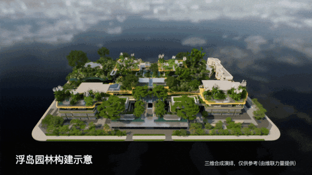 而利用这11米的纵向高度,保利打造了一套垂直立体的「浮岛园林」,总面积超过1.25万㎡。