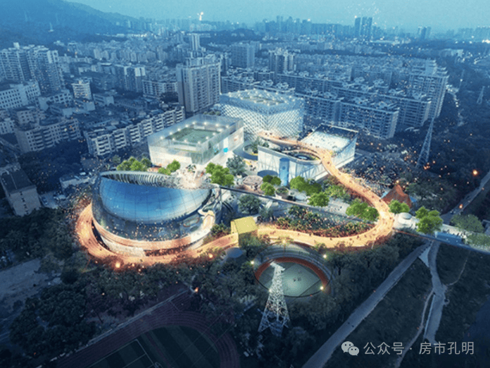 3.西丽文体中心(规划中)总占地面积为41968平方米, 包含室内馆、 剧院、室外项目、地下停车场、办公用房、室外绿化等。