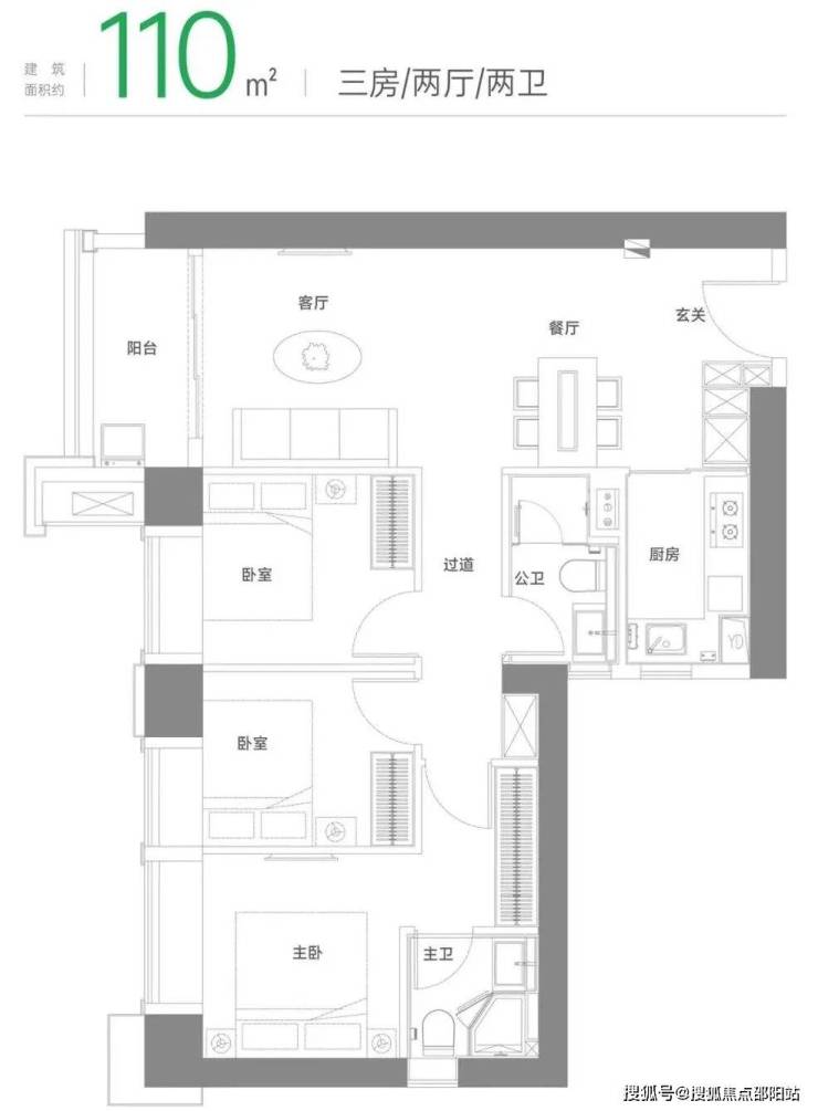 瞰景三房,卧室标配飘窗,观景阳台展开风景画卷|餐客一体化,连通阳台,畅享全家欢聚时刻|动静分区舒适化营造,休慎与家庭活动互不干扰|主卧私享化,独立卫浴、衣帽间,自在天地一隅