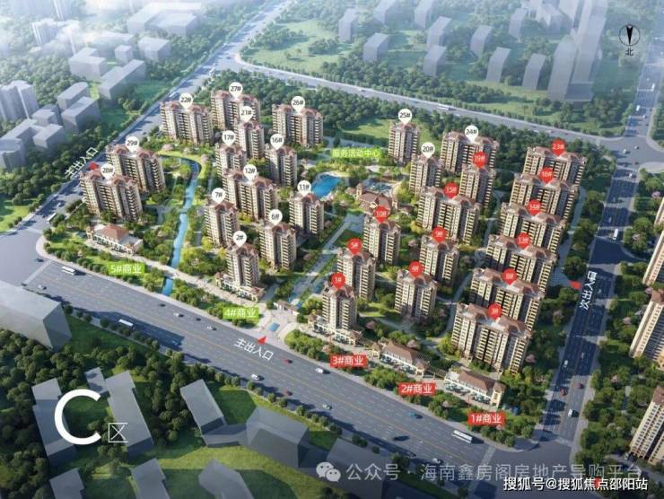 C区鸟瞰图,红色标号为在售房源楼栋