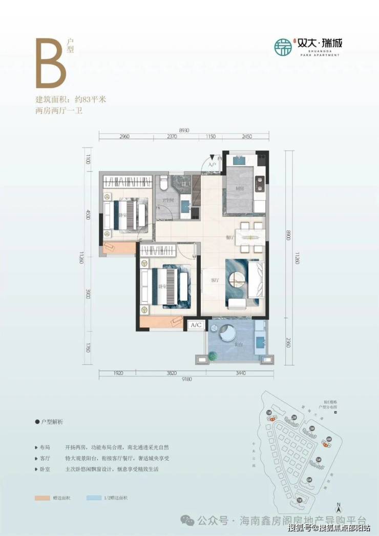 🌳【加售面积】B区83㎡两房、103㎡三房