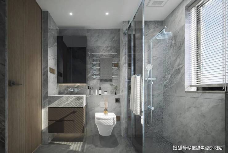 卓越布局,客卧动静分区,卫生间与卧室分开设计,远离潮气;浴室地面及洗手台台面为高端大理石加工定制,淋浴区的大理石更采用仿古防滑处理,洗手盆台面和马桶水箱壁也是采用了同款大理石,风格协调统一,兼顾美观与安全。