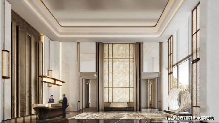 星级酒店式联合大堂作为项目主入口,以高品质材质打造精奢的社区会客空间,约10米挑高的前厅,明亮敞阔的空间设计,独特弧形爵士白大理石造型墙面,彰显高贵典雅,更见项目品质,白雪公主透光玉石搭配9米高金属艺术玻璃屏风,更显联合大堂的雅致与高奢,可见美域蓝湾对高标准酒店式大堂的追求。