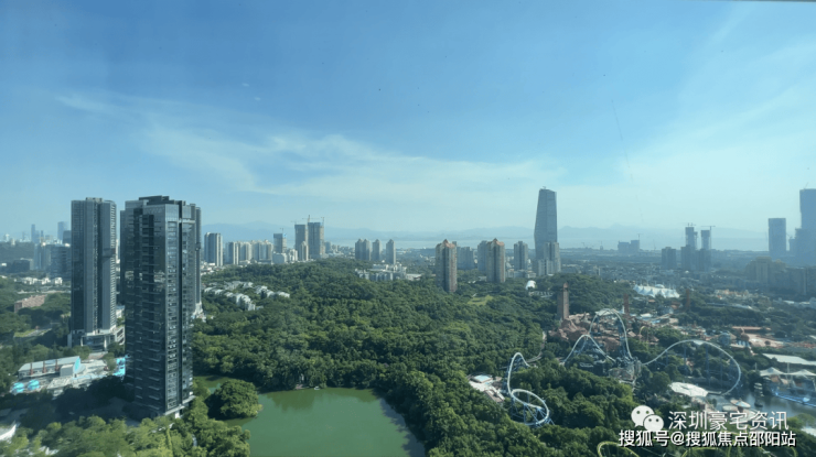 站在深圳最中心地段顶级豪宅《新天鹅堡》的大阳台上,放眼望去,眼底是一片无遮挡近4万平方的天鹅湖景,无边的绿色植被景,以及欢乐谷景尽收眼底。