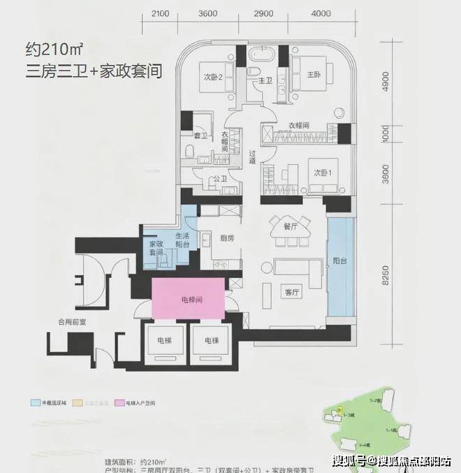 由于大部分户型主阳台都是多面取光,部分302㎡能看到东南,而370-510㎡还可以看到东北面深圳湾城市天际线。