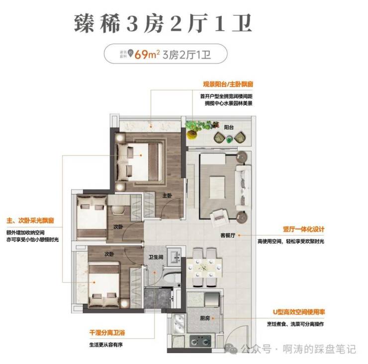 建面约69-110㎡双地铁三至五房 同等面积多一房