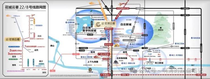 乘8号线北延段支线,迅达越秀、花都,串联广州北站和白云棠溪TOD。