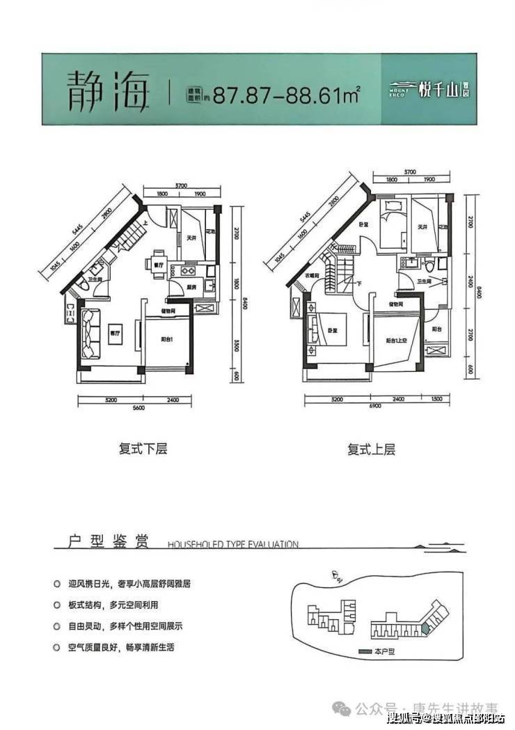 1:【匠心户型】:绝版户型-稀缺罕见,小高层,低密度板楼,户型方正,南北通透,5.6米层真复式;