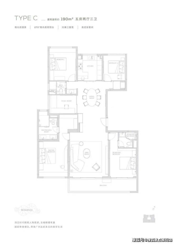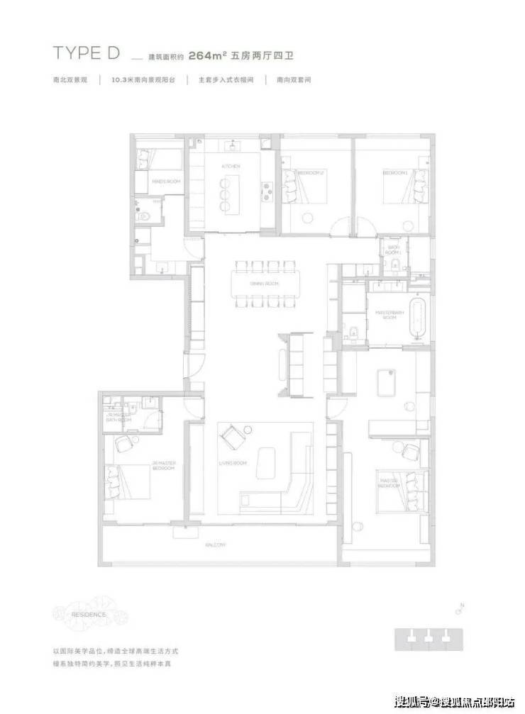 10.3米南向景观阳台-南北双景观-主套步入式衣帽间