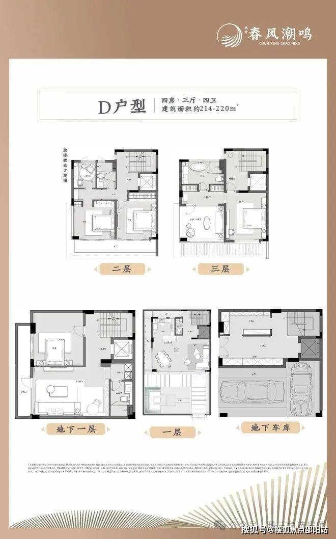鸿升春风潮鸣D户型214~220㎡四房三厅四卫