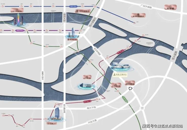 【2大干线开通】南大干线贯穿番禺各大板块,全程无红绿灯;新化快速5分钟即达大学城,15分钟琶洲、金融城,25分钟至珠江新城。