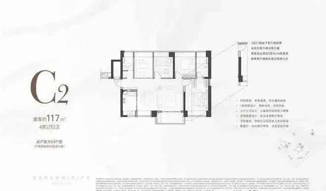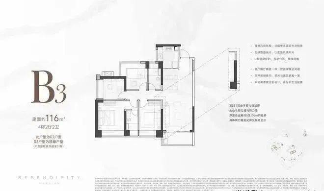 【产品面积段】116-117m'四房,155m'五房梯户比】西区2梯4户、3梯6户 东区35户