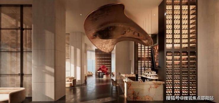 项目设计了地库“中央车站”落客区,区内的星钻穹顶以“日落之钻”为原型设计,材质选用高品质铜材,由资深手工匠人进行纯手工敲击打造,需历经上万次精准敲击与角度调整,单平方米耗材成本超8000元。这里既是停车动线的核心中枢,呈现独一无二的钻石级艺术,同时中央车站也是“生活服务枢纽”。