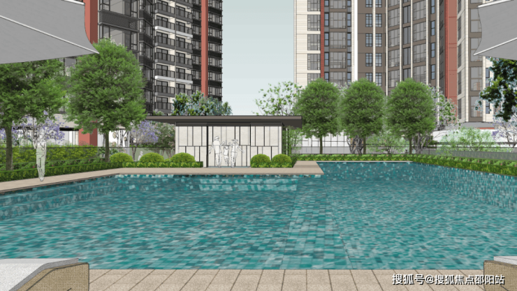 规划以建筑规划布局为基准,形成主入口-景观会客厅-泳池区-红线外体育公园的景观轴线,同时划分出南北两个相对独立的商业区。
