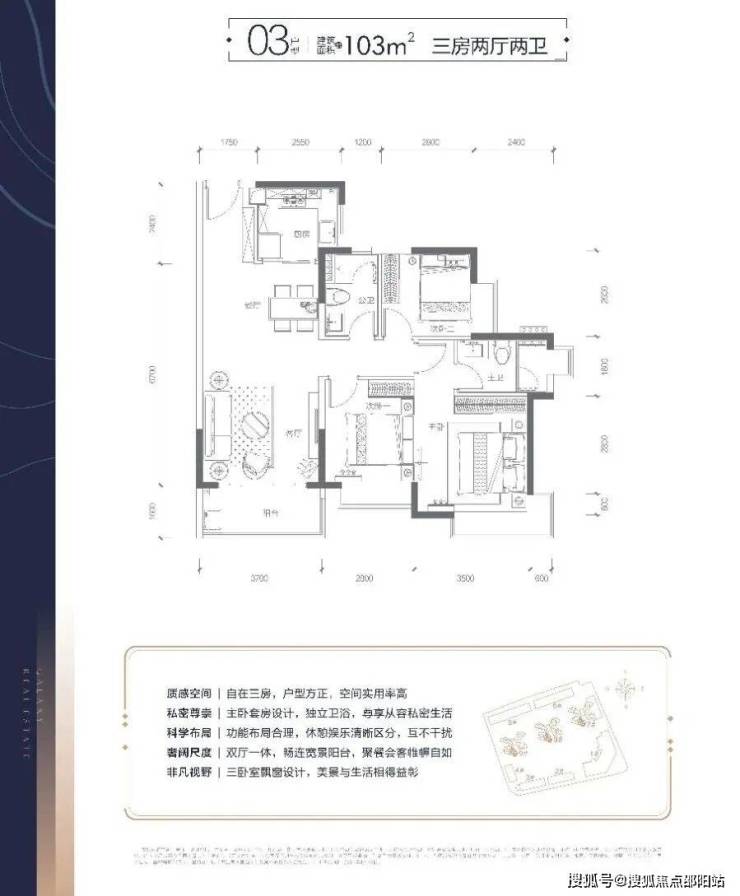 项目分一期开发总占地17337.46㎡ 、小区朝南而向,视野宽,由3栋高层住宅、1栋公寓及部分商墅组构而成,集臻品住宅、创想空间、商务会馆等多元业态于一体,高层住宅为78-103㎡二至三房,高品质装标,户户均带飘窗,大尺寸宽景阳台,采光俱佳;