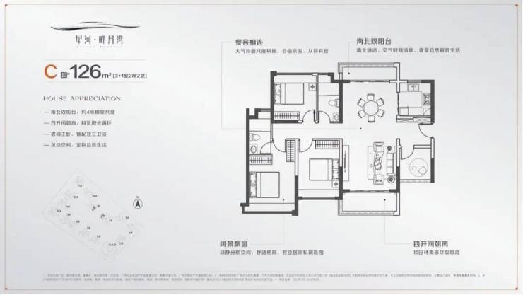 :双阳台布局,南北通透,通风采光俱佳,适合改善型家庭。