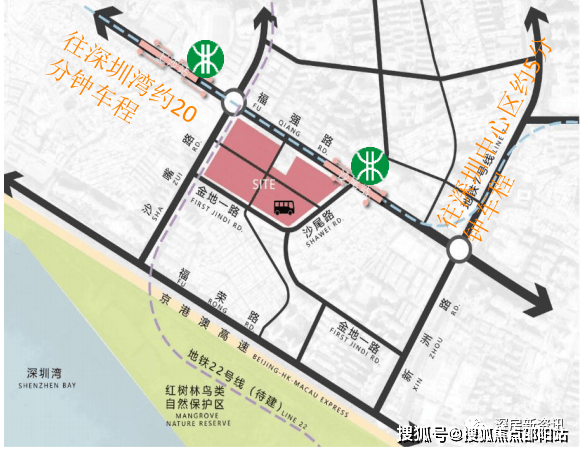 项目紧邻地铁7号线沙尾站(约300米),步行5分钟可达,1站直达香蜜湖金融中心、2站抵车公庙;规划地铁22号线上沙站(约800米)预计2028年通车,自驾依托福强路、滨河大道,15分钟通达南山、30分钟直达港澳。商业方面,自带15.2万㎡集中式商业(含购物中心、餐饮、娱乐),步行可达绿景佐阾红树林购物中心,3公里覆盖KK ONE、中洲C Future City等五大商圈。