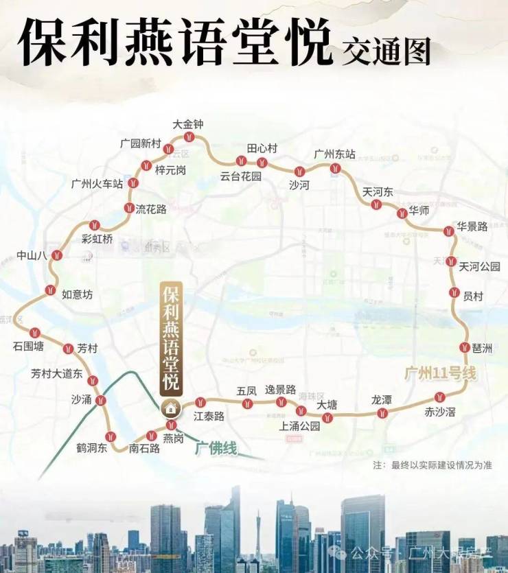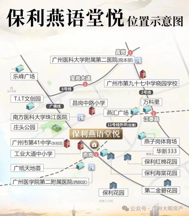 而且燕岗地铁站还是广佛线跟11号线大环线的交汇点,便利度非常的高,对于需要地铁出行的人群来说很友好,尤其是在珠金琶上班的,11号线环线开通后,8站就能直达琶洲,通过广佛线换乘3号线,到珠城也不过是7个站。