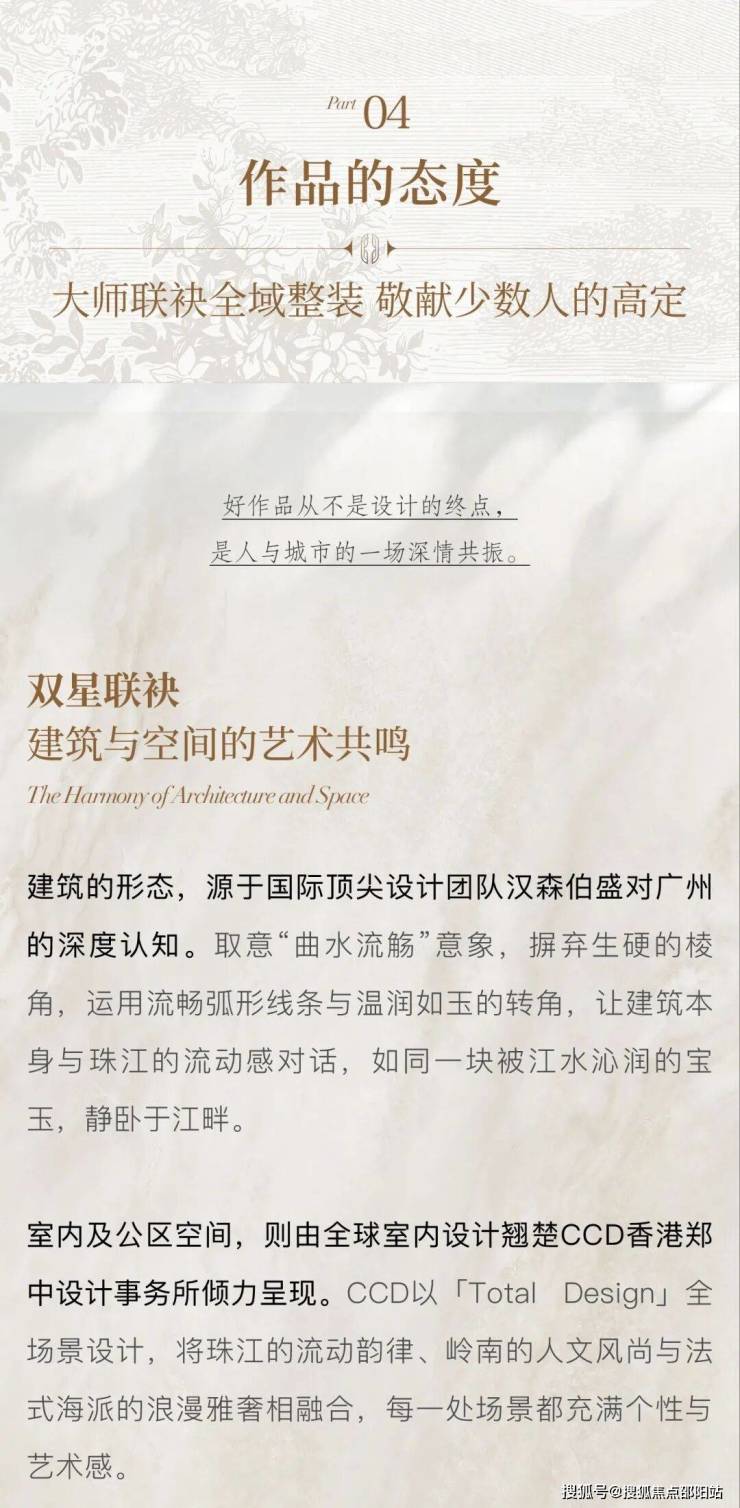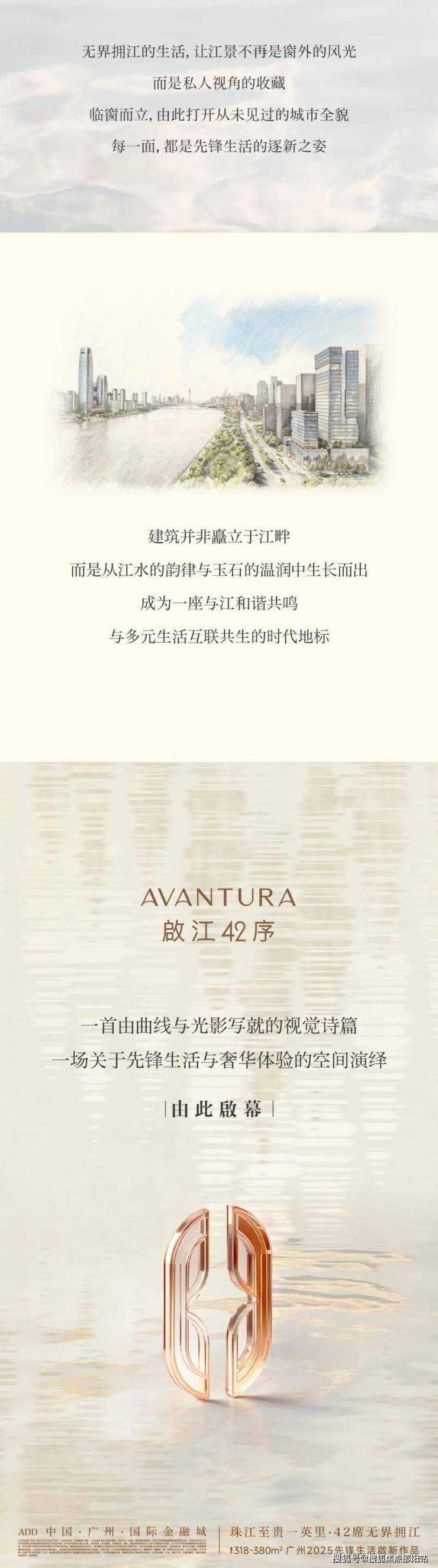 核心理念: 位于广州“珠江至贵一英里”的黄金岸线,定位为全球先锋生活方式的塔尖藏品,仅推出42席稀缺豪宅。