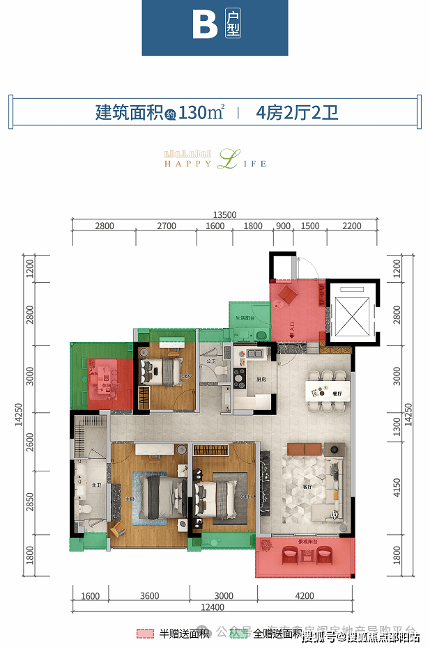 客厅开间4.2米,户型方正,全明通透,动静分区合理