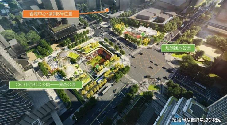 东莞香港中心·紫荆8号香港中心效果图也可以清晰看到,北面为景观绿轴、东北面为莞邑公园。