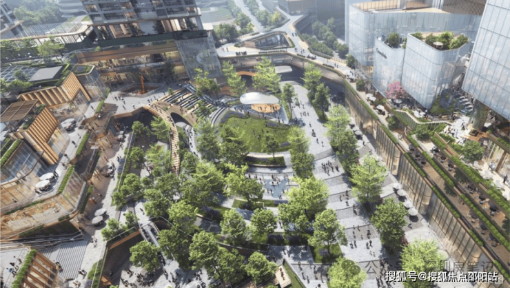 项目打造近万平米绿地公园,将商业休闲与文化艺术空间与生态园林结合,形成自然与建筑融合共生的"漫调生活"体验。