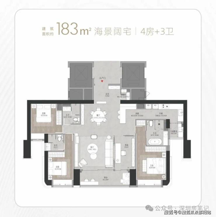 外立面现代简约风格,线条流畅大气,与深圳湾海岸线相呼应。