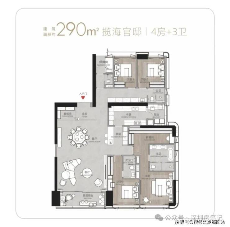 T9/T10栋:总高53层,4梯3户,183-270㎡4房及270㎡复式。