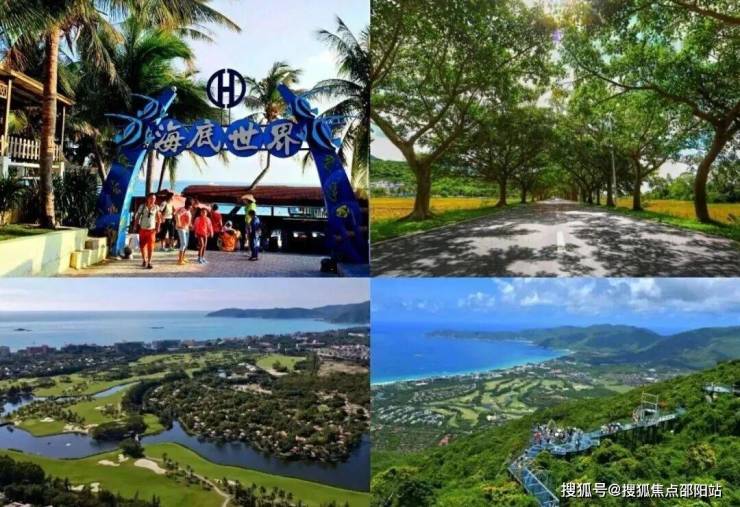 亚龙湾国际高尔夫球场、红峡谷高尔夫球场、 玫瑰谷、天堂热带雨林度假公园、最美公路太阳湾,红树林湿地保护区,亚龙湾海岸线等