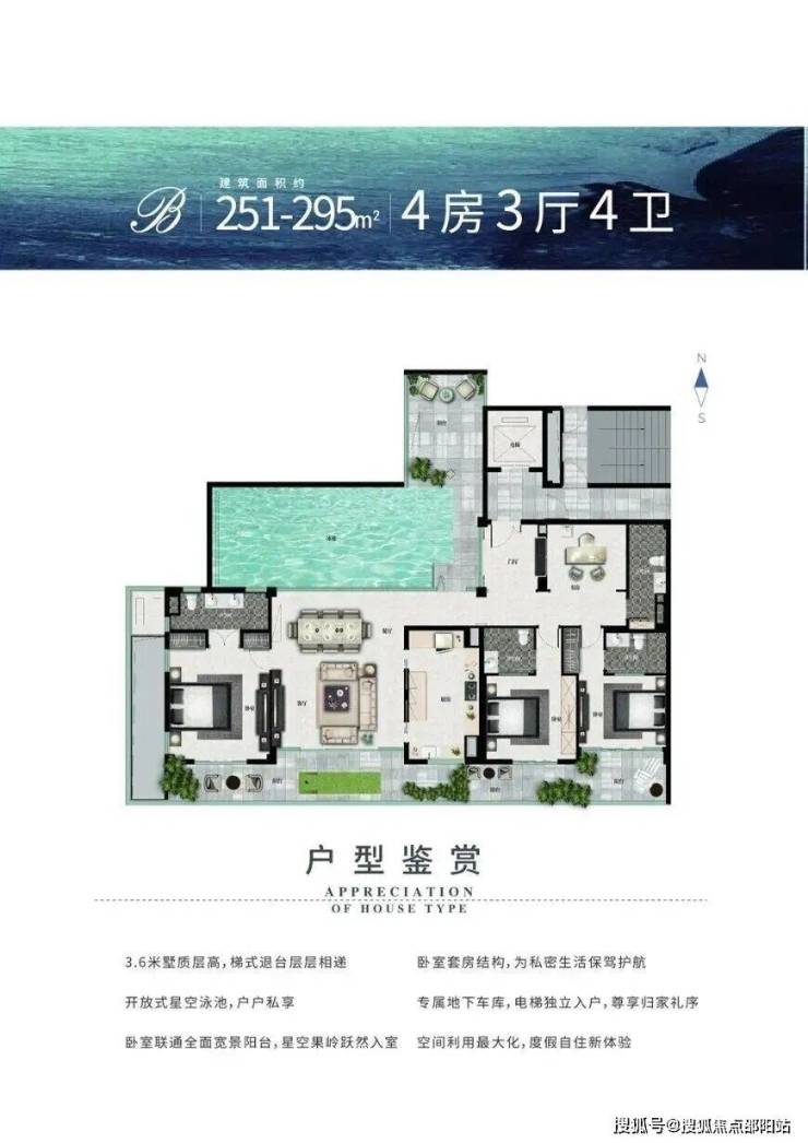 B户型建筑面积:251-295㎡ 四房三厅四卫