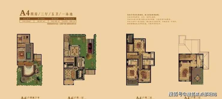 A户型:建筑面积:215-247㎡ 四房三厅四卫