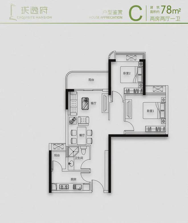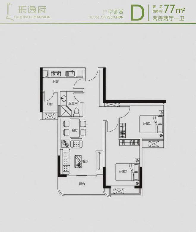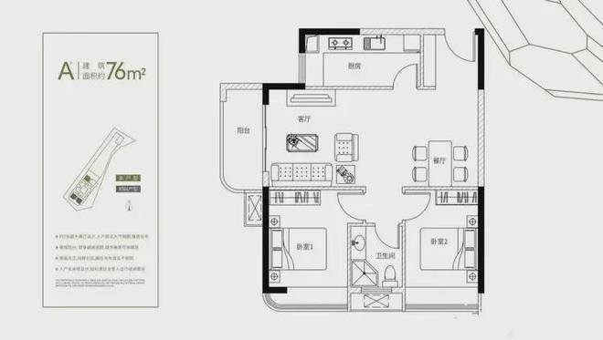 珑逸府76㎡的2房2厅1卫(01.02.11.12户型),设计的是竖厅格局,客厅3.4米开间,LDKB一体化设计,2个卧室分别做到了2.7米/2.6米的宽度,阳台1.5米宽度,L型厨房,得房率:85%(含赠送),有东北或西南朝向。