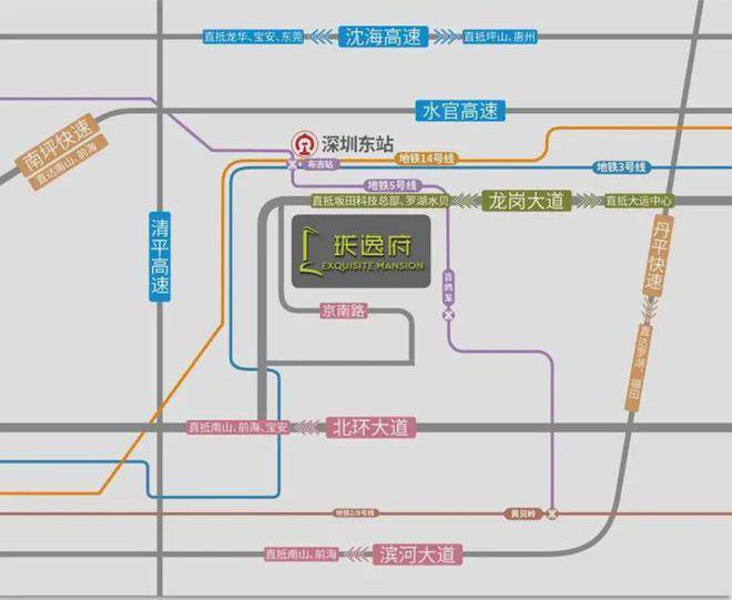 紧邻龙岗大道,自驾上丹平快速、南坪快速、水官高速、清平高速、沈海高速等比较方便,能快速通达罗湖、福田、南山等区域。
