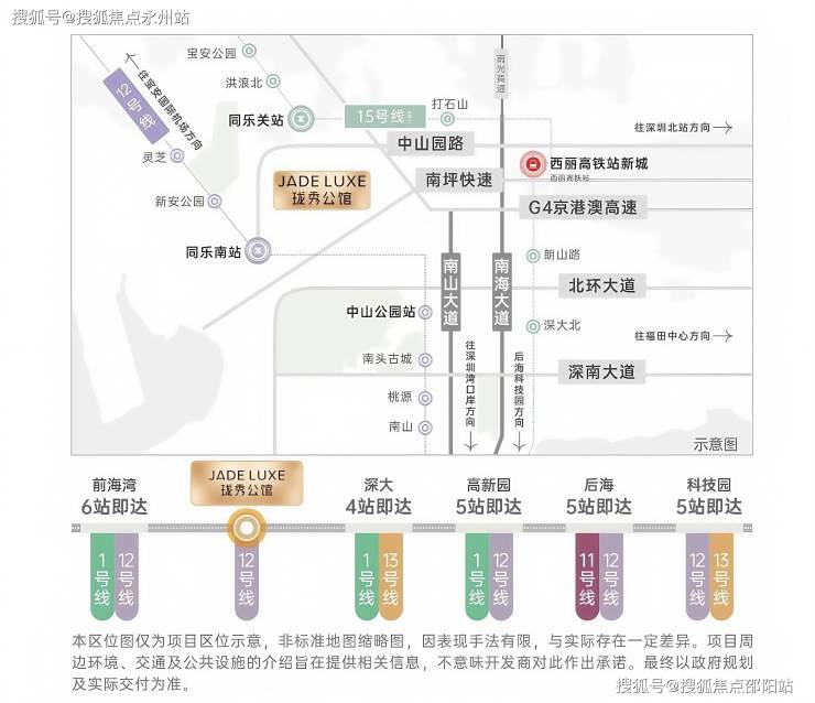 卓越珑秀公馆是卓越集团在南山同乐片区打造的精品住宅项目,位于中山园路与南坪快速交汇处北侧约150米,紧邻地铁12号线同乐南站(步行约500米)。