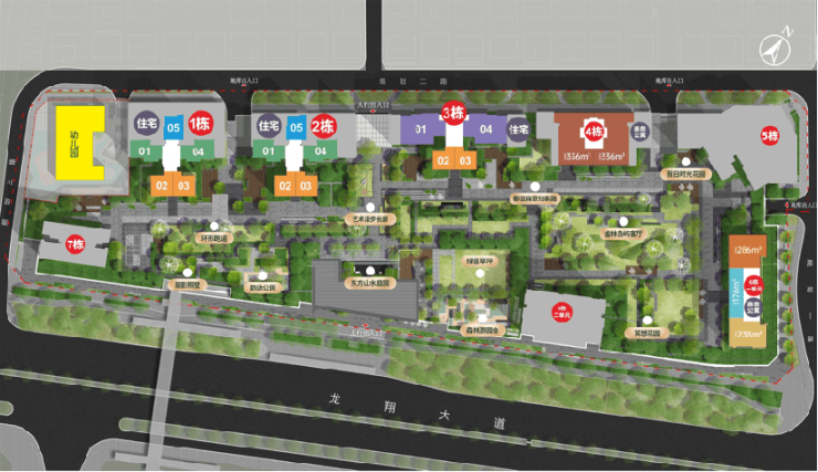 位于龙岗中心城龙翔大道和怡翠路交汇位置,小区占地3.6万,建面22.3万,总共有8栋高层+1栋幼儿园组成,1栋43层,2栋46层,3栋48层,