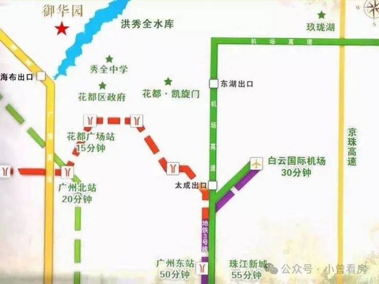 小区门口还有多条公交线路接驳花都市区,附近广清高速海布入口连接广州市区,开车半小时即可到白云。御华园住户还可乘专用穿梭巴士,到达地铁9号线马鞍山公园站,即可便捷搭乘地铁,往返广州市中心,实现双城半小时生活圈。