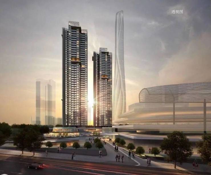 从外立面效果图可见,整体产品档次较高,建筑外观采用大量玻璃幕墙,同时也为与二三期的商业,商办,公寓等产品协调一体化。