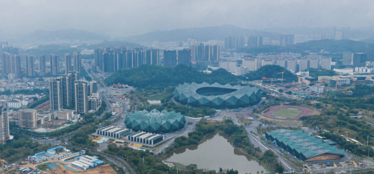 大运中心由“一场两馆”构成,分别是体育场、体育馆、游泳馆,并配有大运湖、全民健身广场及体育综合服务区等设施。