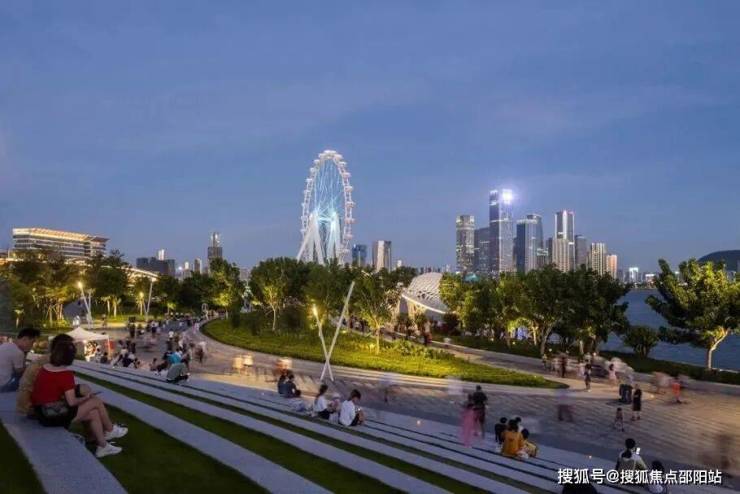 约2公里长的滨海廊桥城市绿廊缝合了城市地标、公共空间、绿化、地铁枢纽等,让城市以点成线,璀璨的灯火串联,配套与配套之间实现便利的交融,城市的活力也此之间流动蔓延。